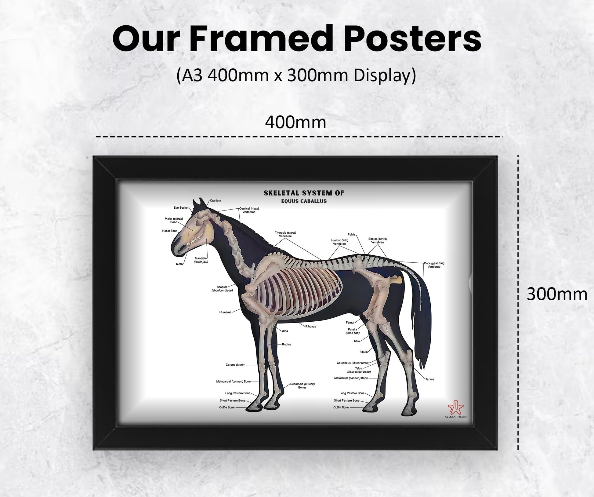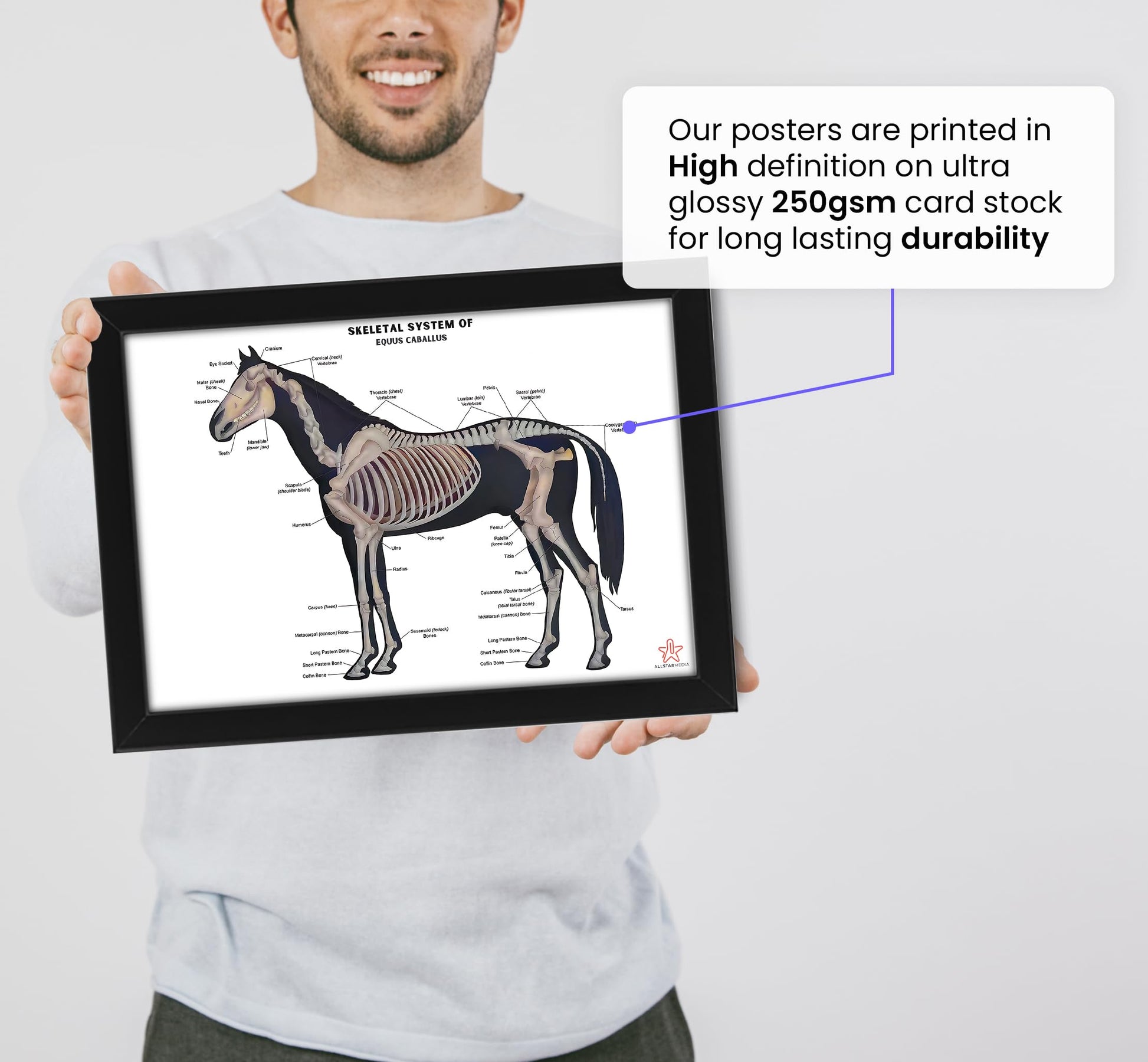 Discover the Horse Anatomy Chart showcasing the equine skeleton and bones. Perfect for classrooms, veterinary schools, or home decor. Enhance learning with this detailed educational poster.