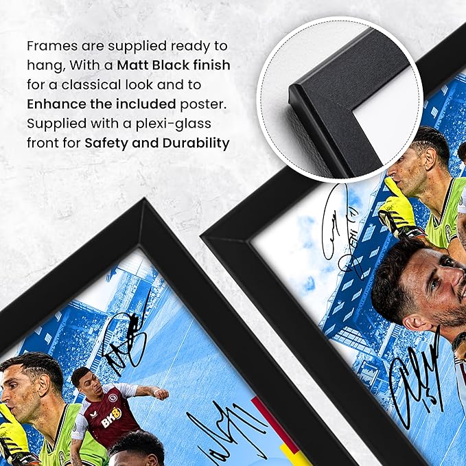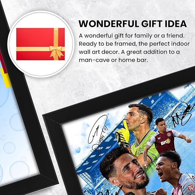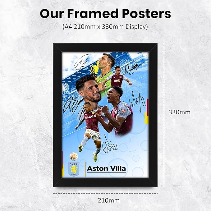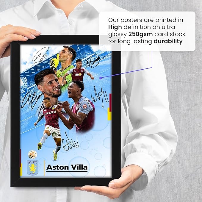 - Perfect Fan Memorabilia: Ideal for framing and displaying in your home, office, or fan cave, showcasing your support for Aston Villa. Aston Villa FC team signed poster featuring autographs from all the players.