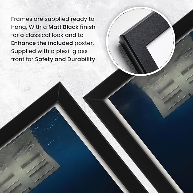 - Each item is available in sizes A4 (30x21cm) or A3 (30x42cm), either unframed or in a stylish Matt Black frame to enhance the design and look aesthetically pleasing in any environment.