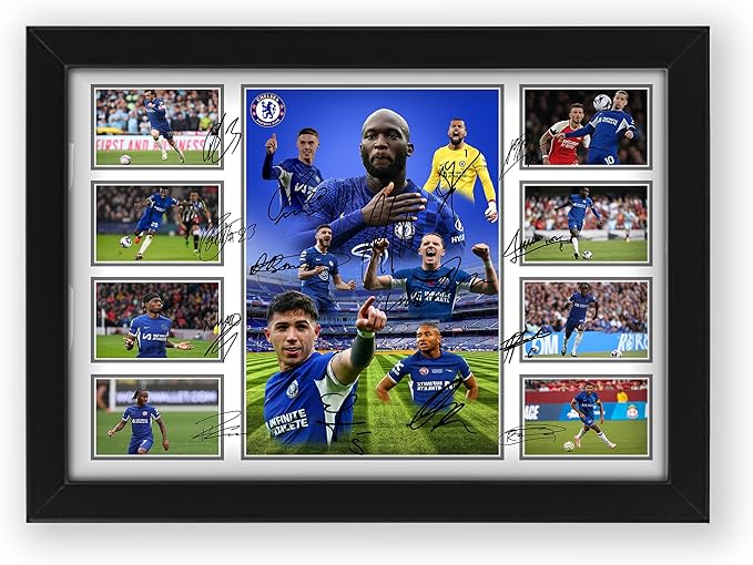- Contains the printer autographs of: Romelu Lukaku, Alfie Gilchrist, Ben Chilwell, Christopher Nkunku, Cole Palmer, Conor Gallagher, Enzo Fernández, Malang Sarr, Moises Caicedo, Mykhailo, Nicolas Jackson, Noni Madueke, Raheem Sterling, Reece James, Robert Sanchez