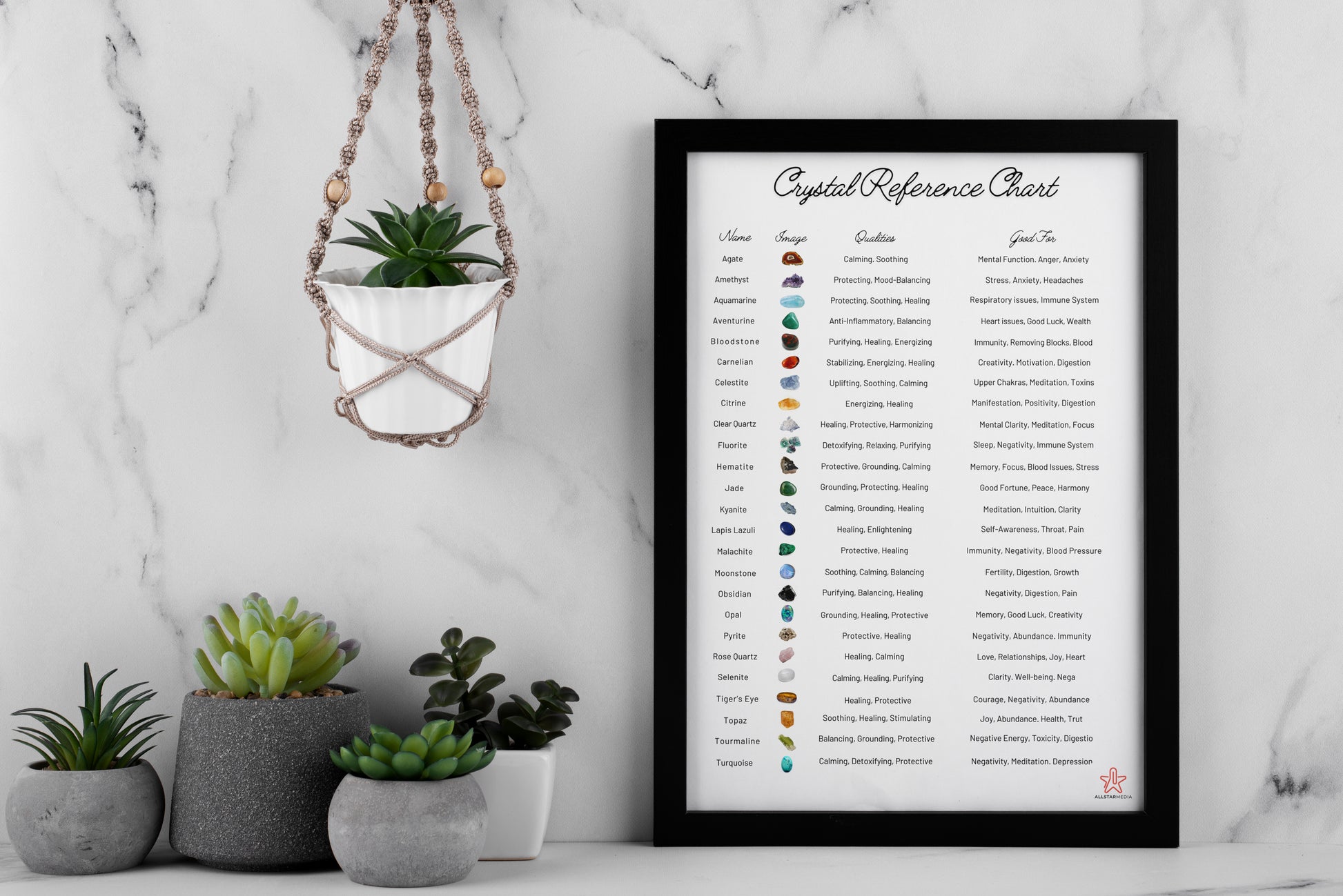 Discover the ultimate Crystal Reference Chart. Perfect for crystal enthusiasts, with a healing crystals guide, identification chart, and decor ideas. Shop now!
