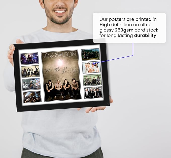 - Authentic Reproduction: Each Autograph is replicated using imaging techniques to ensure a true likeness to the original autographs Printed on premium-quality paper with vibrant colors and intricate detail, this poster adds a touch of modern chic to any room. Whether you're a devoted fan or simply appreciate authentic rock 'n' roll, this poster is guaranteed to make a striking statement in your bedroom, studio, or music room. Immerse yourself in the electrifying performances of Kings of Leon, from the intimate venues of their early shows to the grand stages of their global arena tours..