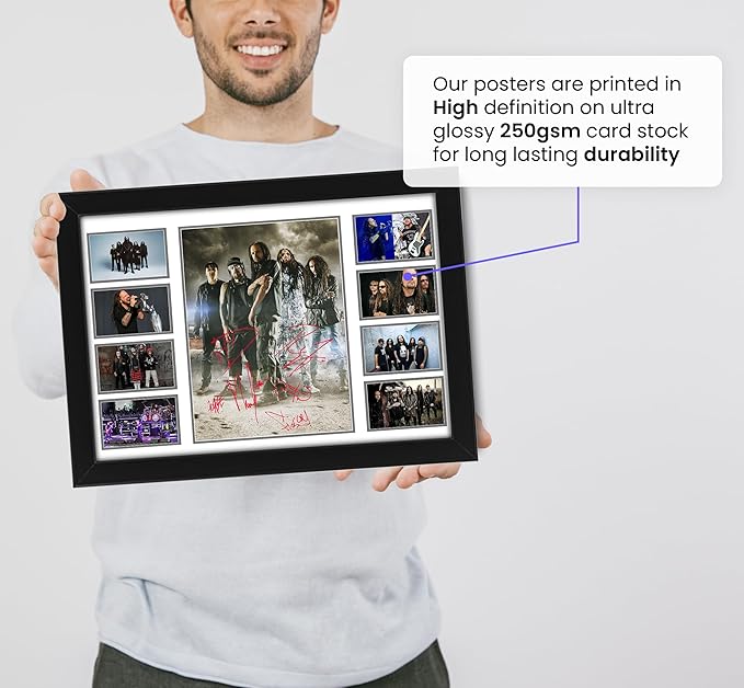 - Authentic Reproduction: Each Autograph is replicated using imaging techniques to ensure a true likeness to the original. Featuring the iconic lineup of Jonathan Davis, James "Munky" Shaffer, Brian "Head" Welch, Reginald "Fieldy" Arvizu, and Ray Luzier, this poster celebrates the individual brilliance of each member and the collective ferocity they bring to the stage. Printed on premium-quality paper with vibrant colors and intricate detail, this poster adds a touch of metal mayhem to any room. Whether you're a die-hard fan or simply appreciate intense music, this poster is guaranteed to make a bold statement in your bedroom, studio, or music room.