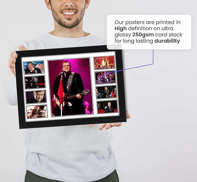 - Crafted on premium-quality paper with vivid colors and intricate detail, this poster infuses any room with rock 'n' roll grandeur. Whether you're a devoted fan or simply appreciate timeless classics, this poster is sure to command attention in your home, studio, or music den. Immerse yourself in the dramatic world of Meat Loaf, from the epic stages of his theatrical performances to the intimacy of his studio recordings.