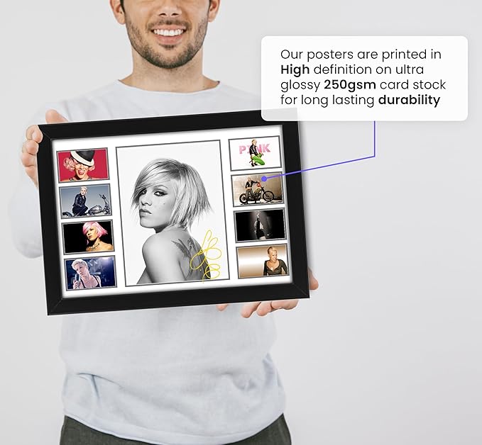 - Authentic Reproduction: Each Autograph is replicated using imaging techniques to ensure a true likeness to the original. Printed on premium-quality paper with vibrant colors and intricate detail, this poster adds a touch of modern edge to any room. Whether you're a devoted fan or simply appreciate powerful vocals and bold performances, this poster is guaranteed to make a striking statement in your bedroom, studio, or music room. Immerse yourself in the electrifying performances of Pink, from the intimate venues of her early shows to the grand stages of her global tours.
