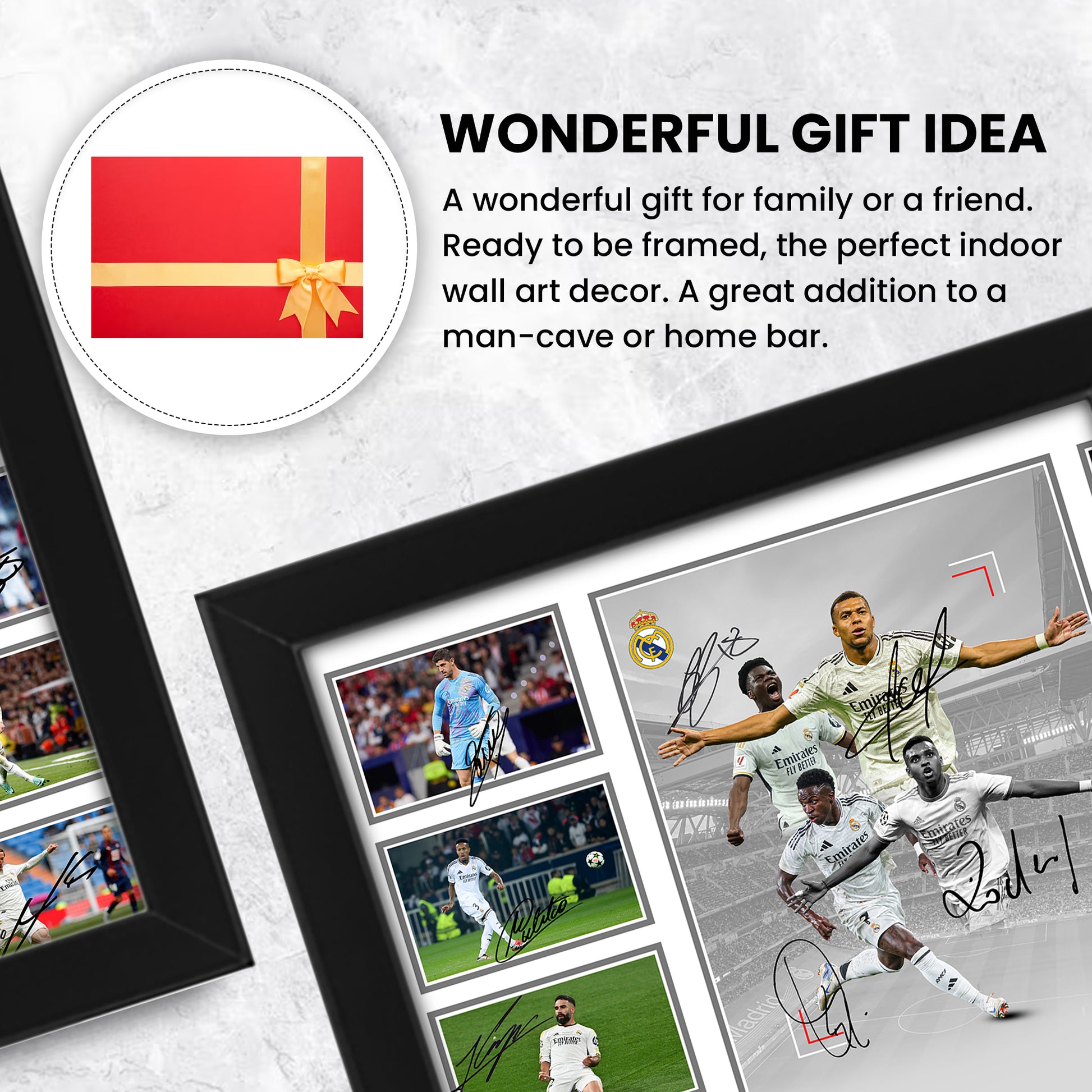 Whether you are a fan of Real Madrid’s record-breaking victories, or admire the stars that shape the club’s success, this collectible memorabilia will be a timeless addition to your collection. Choose between A4 and A3 sizes, available framed or unframed, to suit your display needs.