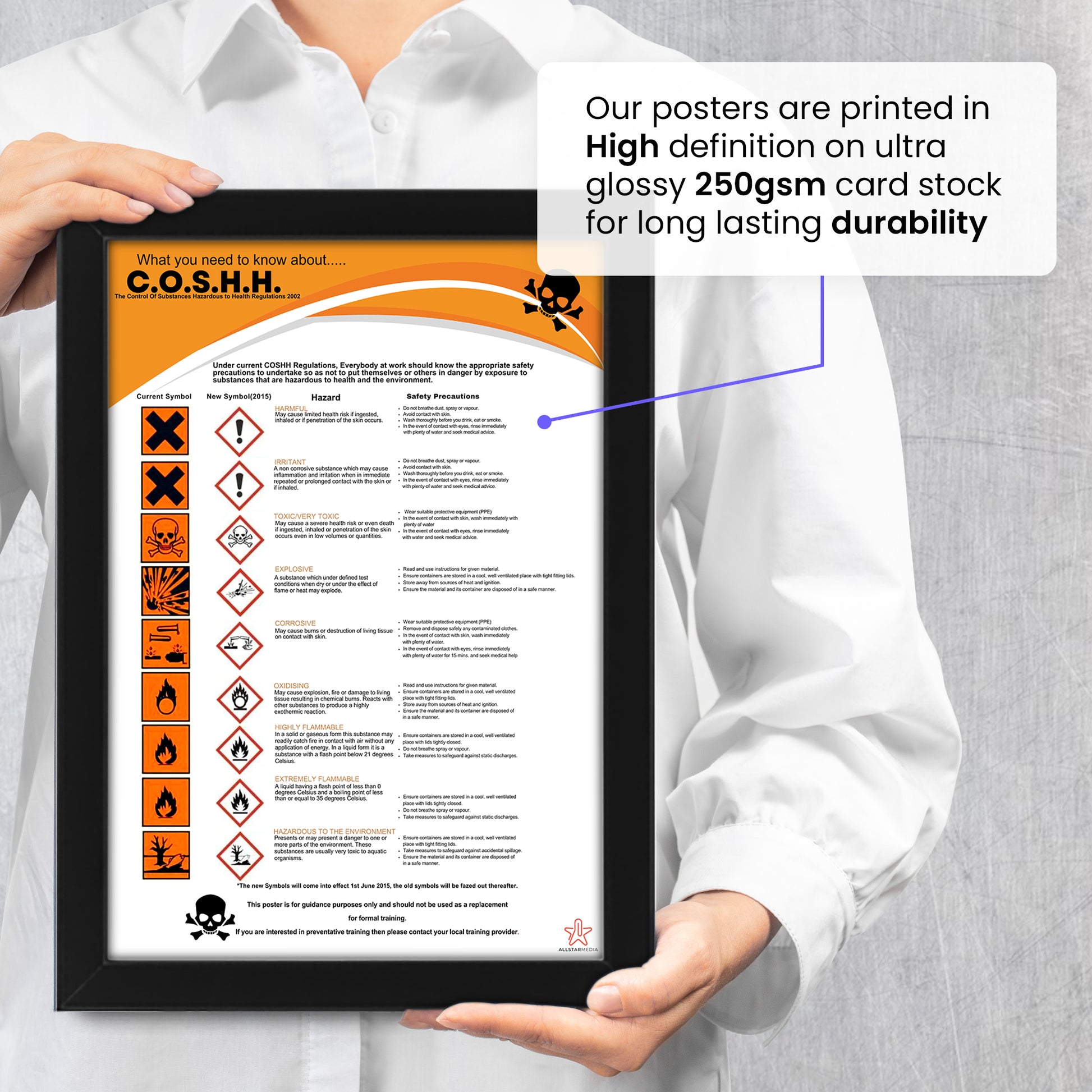 Safety Sign - GHS COSHH Health Hazard Symbol | Hazardous Substances Warning Poster | Workplace & Laboratory Safety Signage
