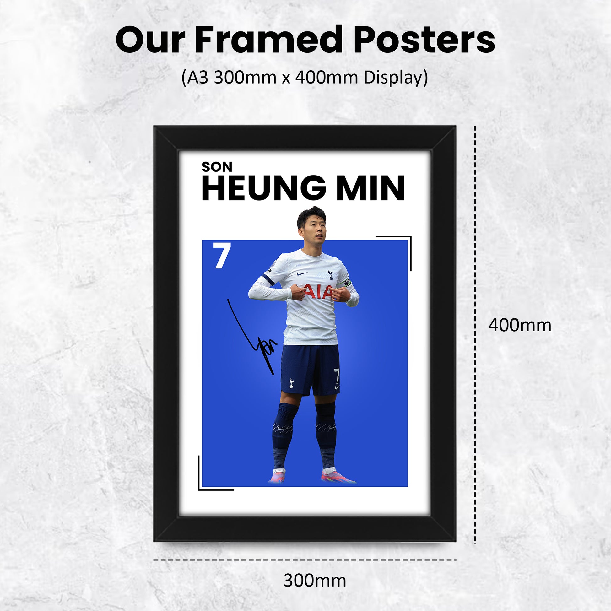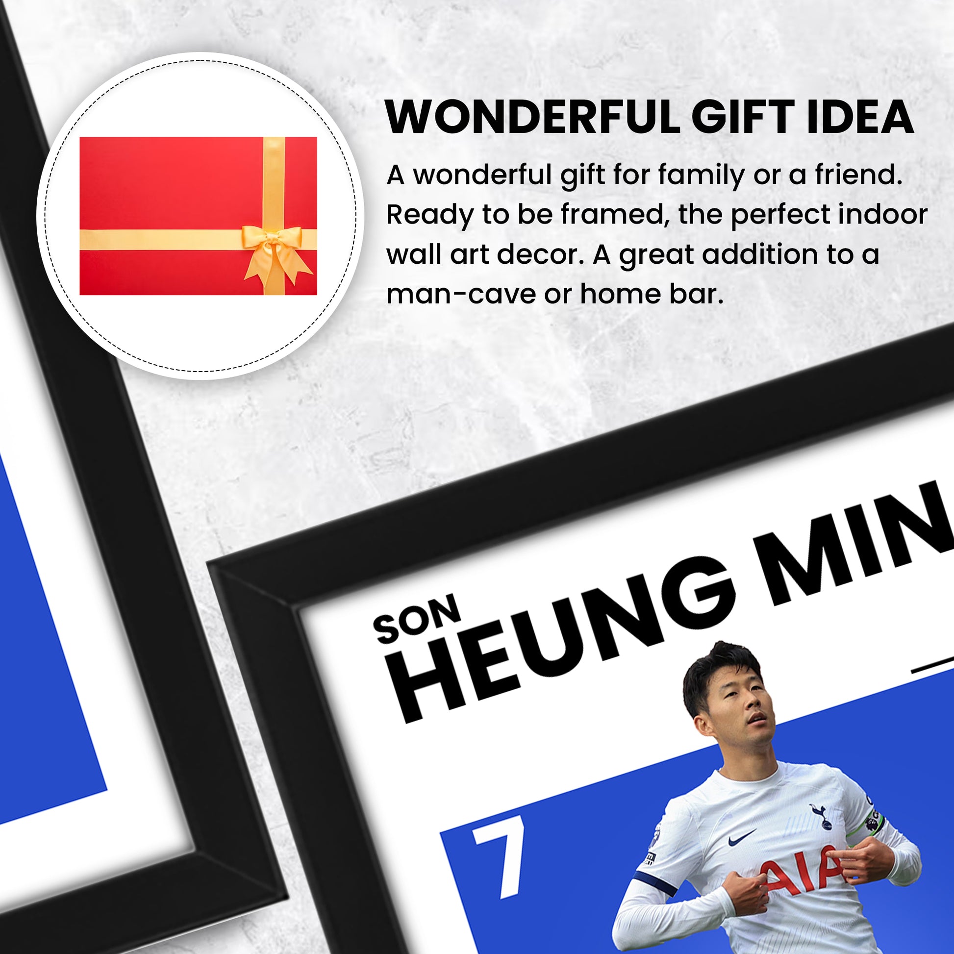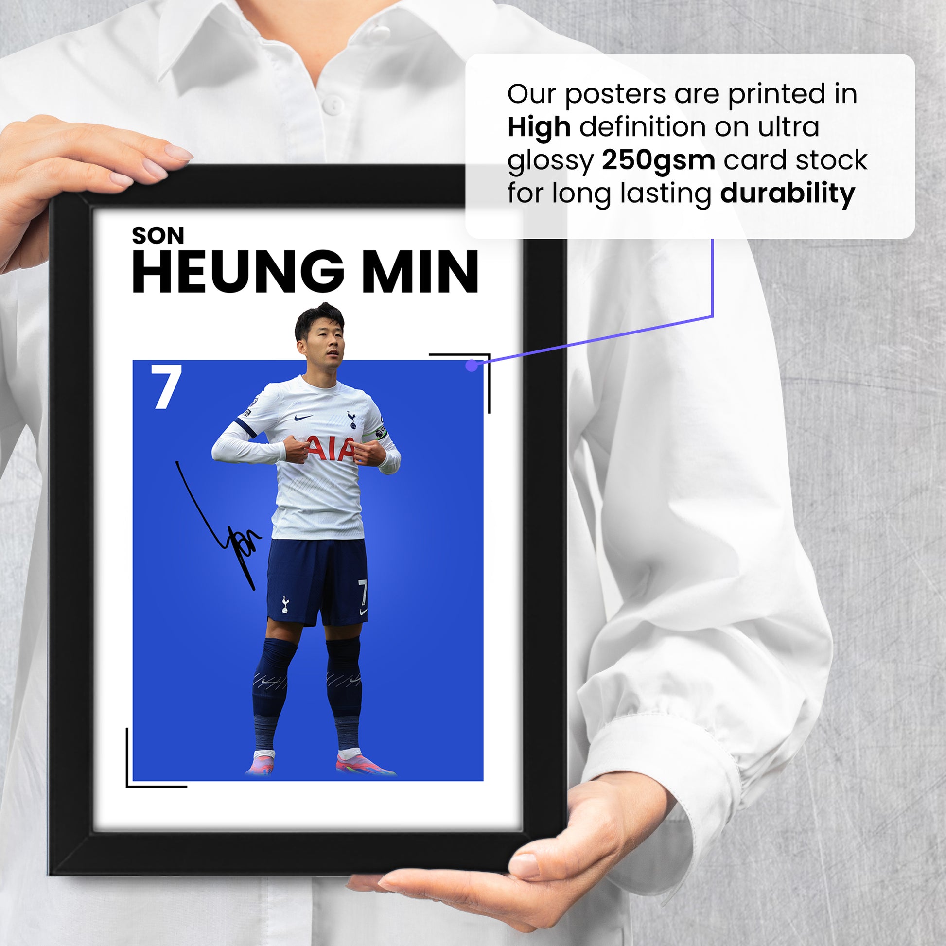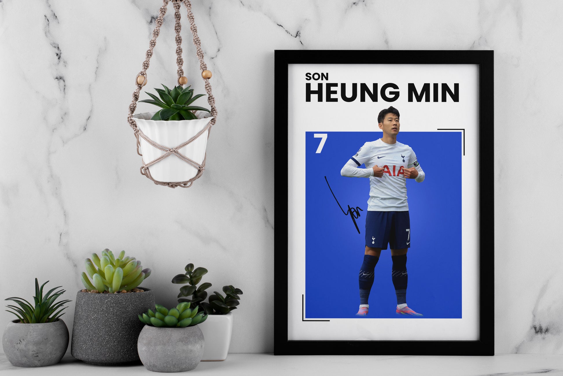 Capture the Moment: Own a piece of football history with this exclusive, limited edition Son Heung-min autographed poster print. Unique gift for fans of Tottenham Hotspur and South Korean football.