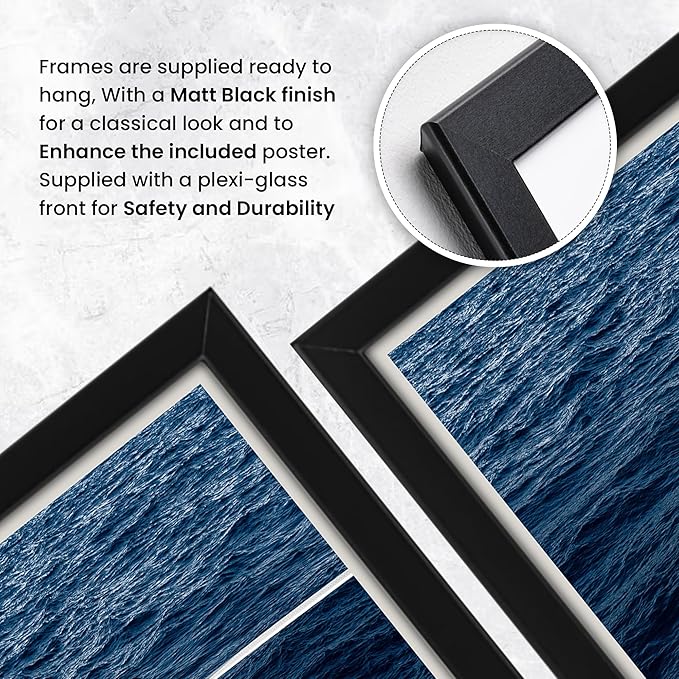 - Each item is available in sizes A4 (30x21cm) or A3 (30x42cm), either unframed or in a stylish Matt Black frame to enhance the design and look aesthetically pleasing in any environment.