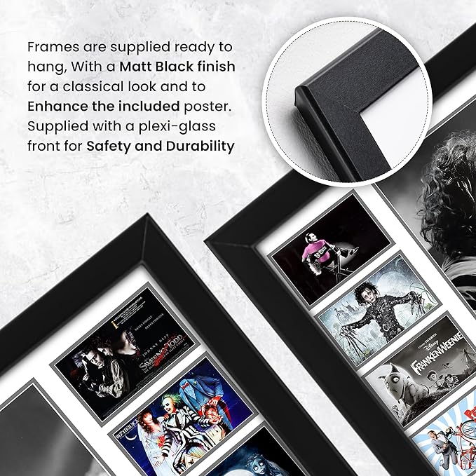 Iconic Imagery: Dive into the whimsical worlds of Tim Burton's films with this poster showcasing memorable characters and scenes from classics like "Edward Scissorhands," "Beetlejuice," and "The Nightmare Before Christmas."